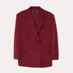 This double-breasted blazer redefines power dressing with its sharp tailoring and structured silhouette. Featuring notched lapels and flap pockets, it combines classic design with contemporary elegance.