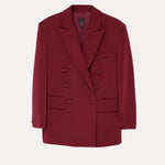 This double-breasted blazer redefines power dressing with its sharp tailoring and structured silhouette. Featuring notched lapels and flap pockets, it combines classic design with contemporary elegance.