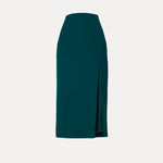 This midi pencil skirt features a sleek silhouette with a subtle side slit, adding a modern touch to its classic design. A timeless piece that embodies effortless elegance.