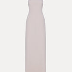 This strapless column gown features a minimalist silhouette that exudes timeless elegance. The clean and sleek design makes it a refined choice for formal occasions and sophisticated settings.