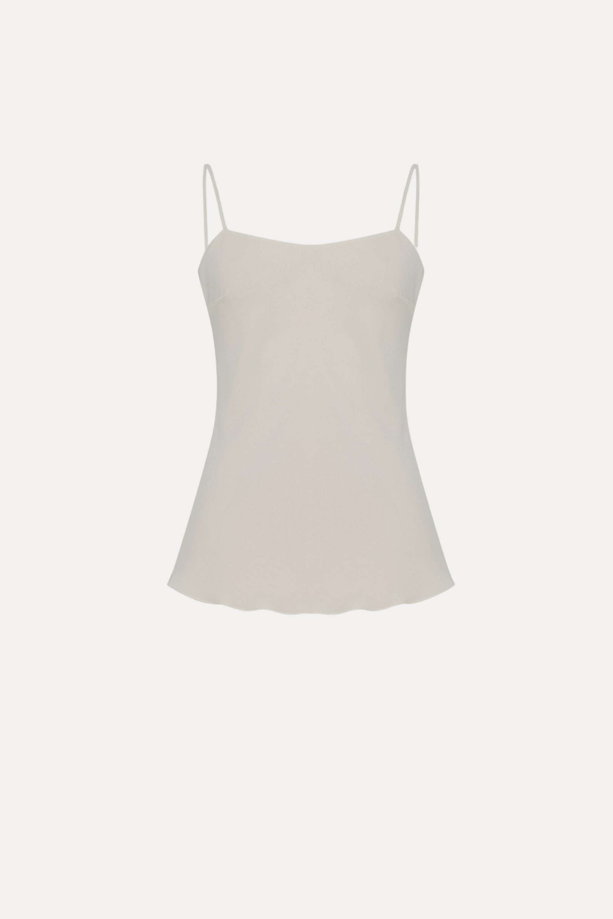 This delicate camisole features slim straps and a soft, flowing silhouette for a minimalist yet elegant look. Its lightweight fabric ensures comfort and versatility.