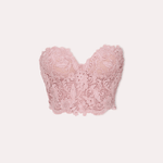 This delicate lace bustier showcases an intricate floral pattern, offering a romantic and timeless appeal. Its structured design adds both comfort and elegance, perfect for pairing with formal or modern ensembles.